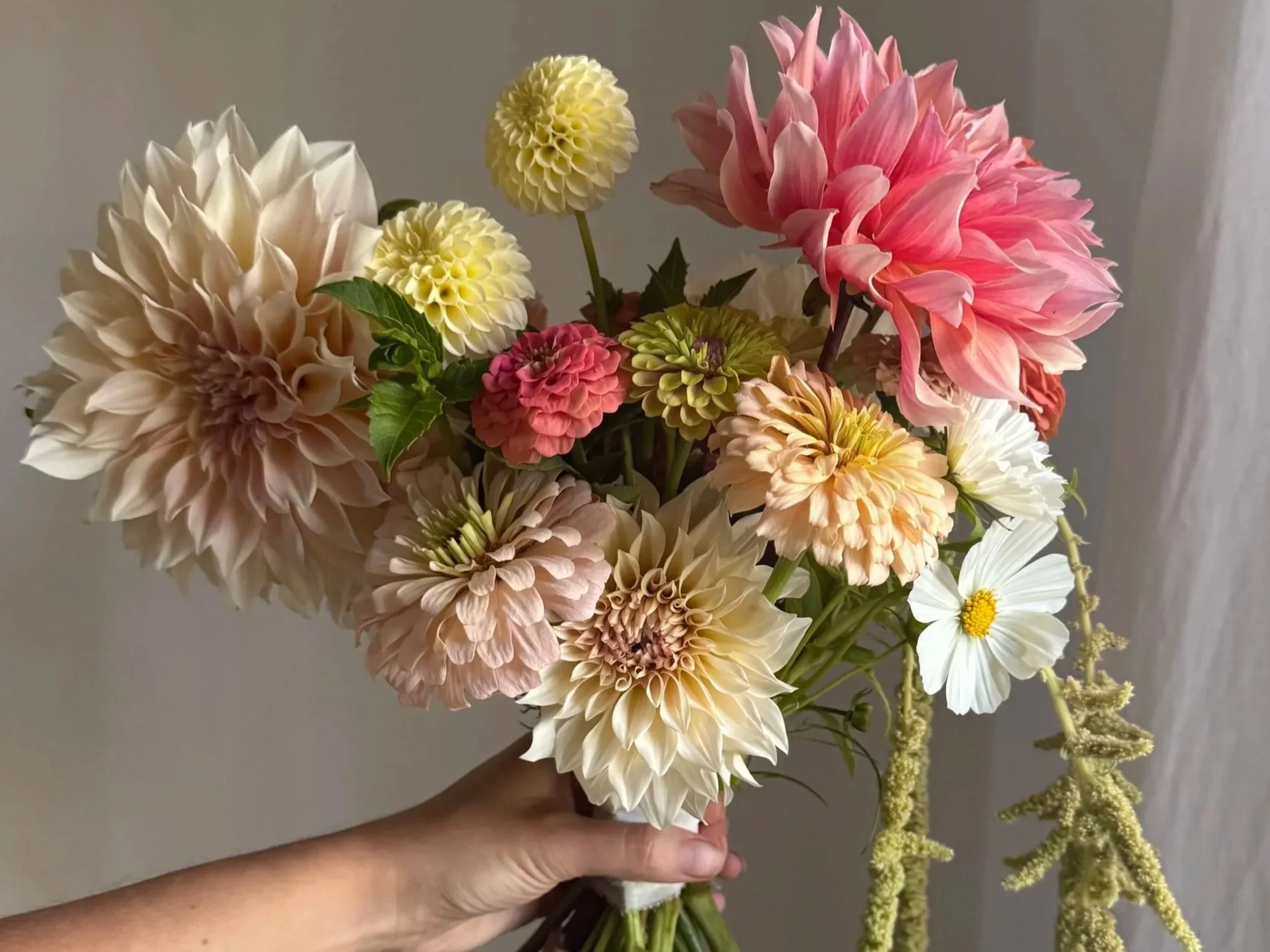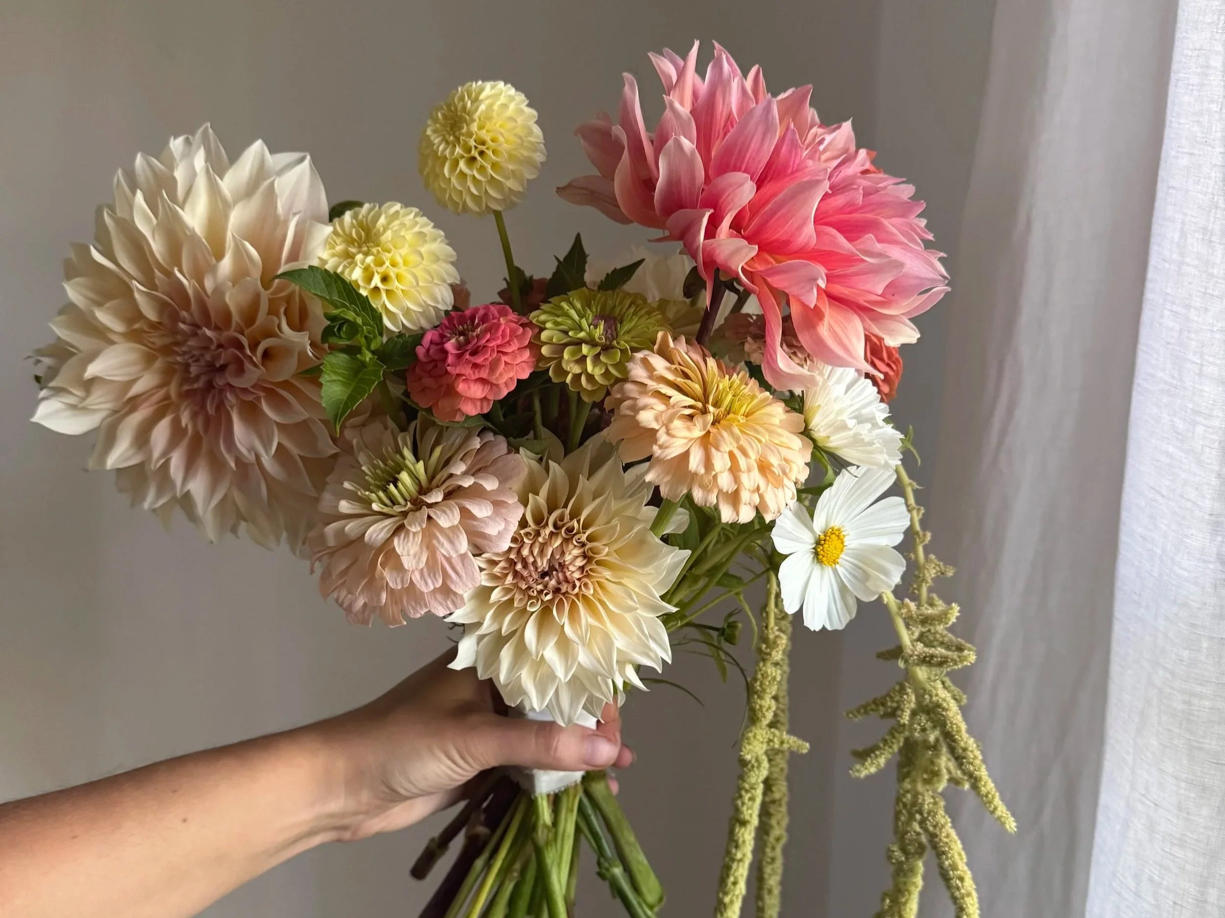 To keep the process simple and the pricing transparent, I offer a curated menu of modern garden style designs made from locally grown blooms. Each design uses the very best of what is blooming the week of your event.